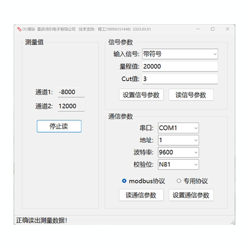 通信支持2種通信協議,1、模塊專用協議,協議簡潔,發送接收數據量少,速度快;2、標準modbus rtu協議,通用協議,可直接用支持此協議的設備相連。